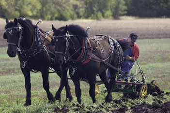 One thing we as teamsters need to achieve when we drive our teams is keep them aligned with each other. Meaning one horse is not ahead of the other. Steve Bowers puts it very simple. Most of the time the teamster is at fault for not correcting the situation. Either you have one horse too fast or one horse too slow. If you are using shank bits you may have to move your line down on the faster horse and maybe move your line up on the slower horse. Steve says that most of the time the teamster him/her self has allowed this to happen. If you can't slow the fast horse down then maybe the use of a whip is needed. If your faster horse gets jumpy when you tap the slower horse you be need to like a fiberglass electric fence post and just poke the slower horse so the other one doesn't get excited. Remember you have to control the situation and get them to walk even.